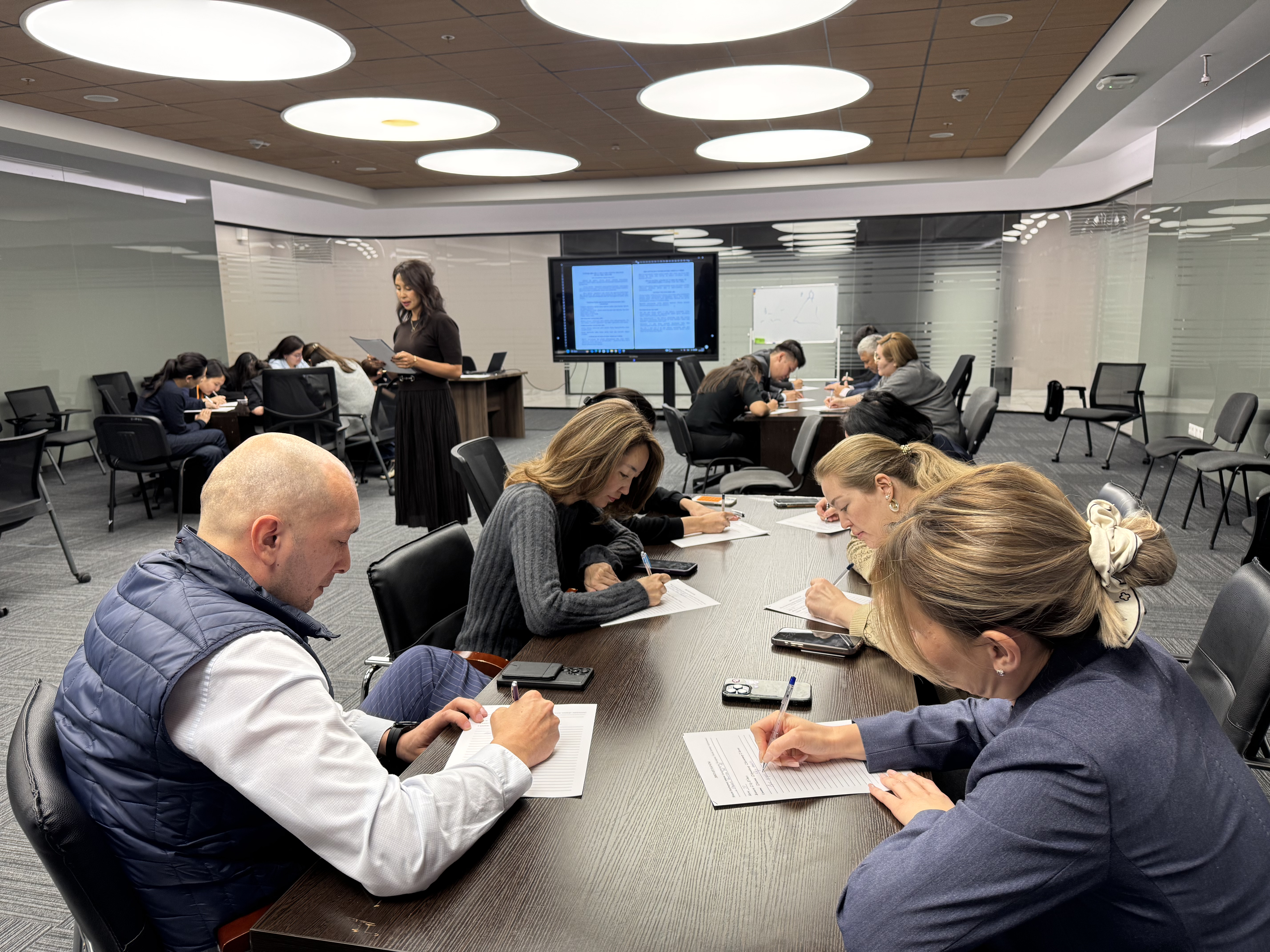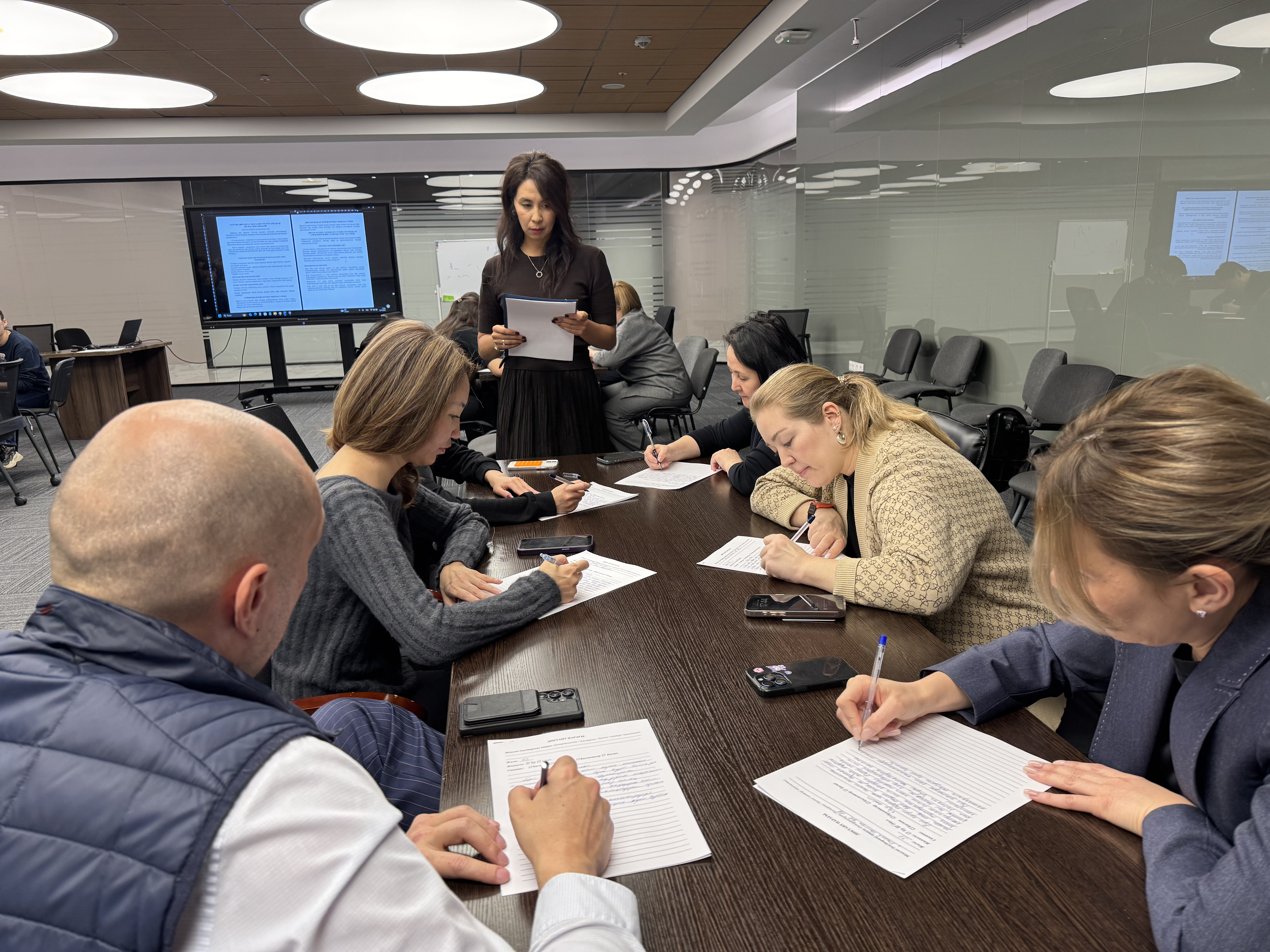 Компания қызметкерлері диктант жазып, өз білімдерін сынады. Оның мәтіні ұлы қазақ ағартушысы Ахмет Байтұрсынұлының 1913 жылы «Қазақ» газетінде жарияланған мақаласынан алынған. Диктант дәстүрлі форматта өткізілді.